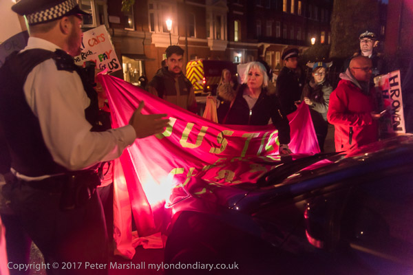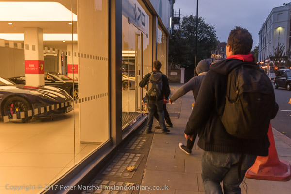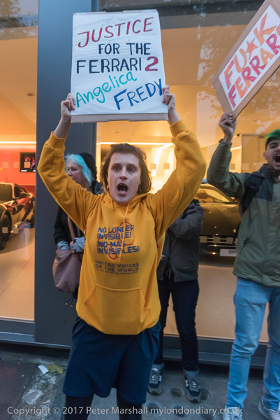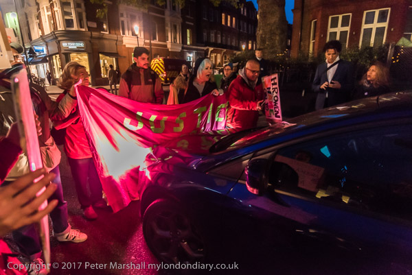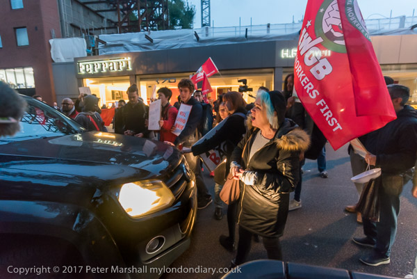 and the protesters set off to walk down the road to the showroom. But they have been seen on the way