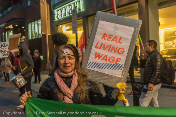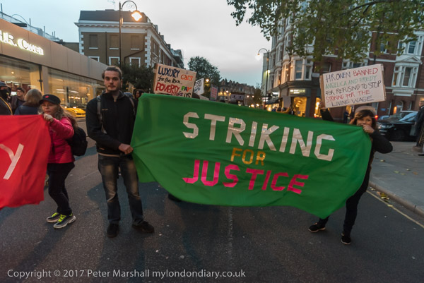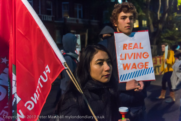 The protesters march off to another protest for workers at the Royal College of Music, but I need ot get home
