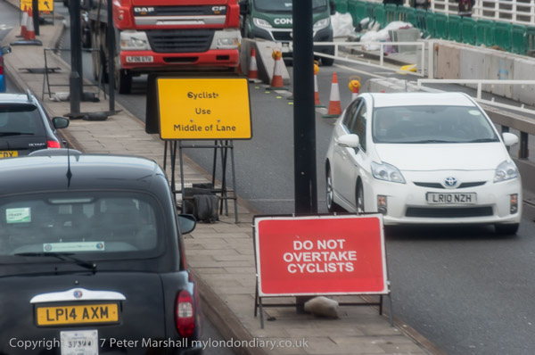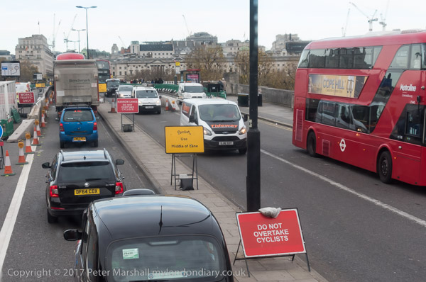 Waterloo Bridge 'Cyclists use middle of lane'