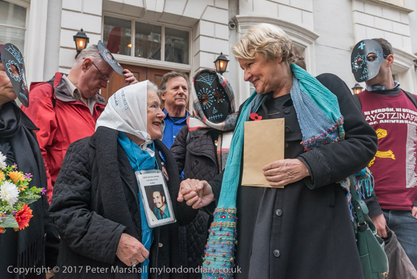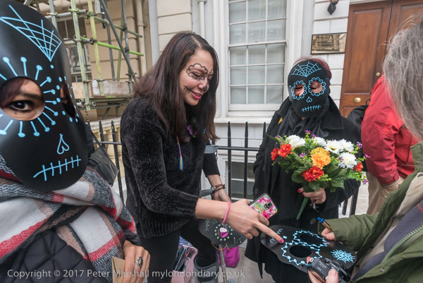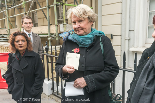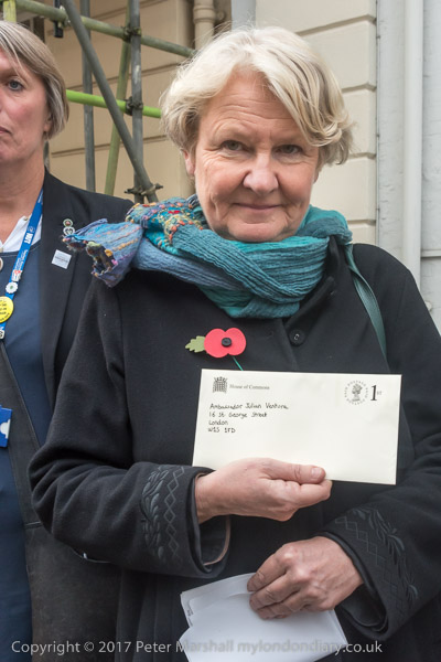 Helen Goodman holds the letter to the Mexican Ambassador which she