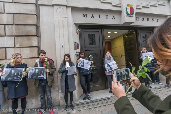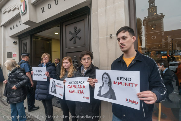The protest took place outside Malta House, the embassy on Piccadilly