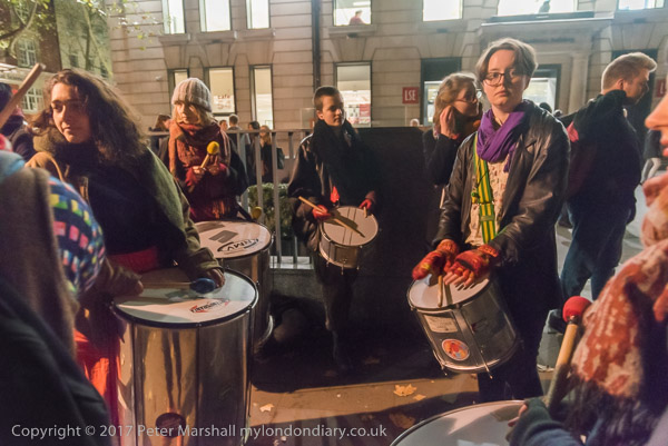 A blue smoke flare was thrown towards the LSE building, and was kicked