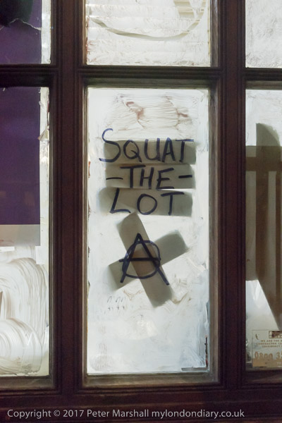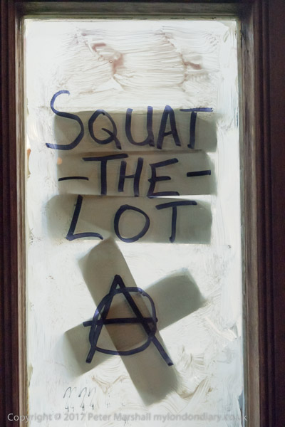 And the message on the door is 'Squat the Lot'
