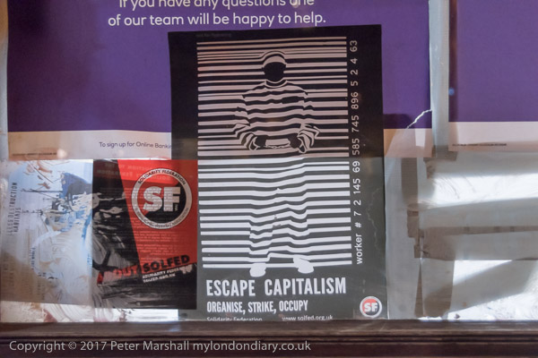 'Refugees Welcom' 'Escape Capitalism - Organise, Strike, Occupy -
