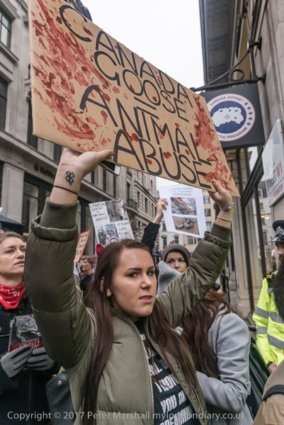 'Canada Goos, Animal Abuse' was one of a number of slogans the protesters