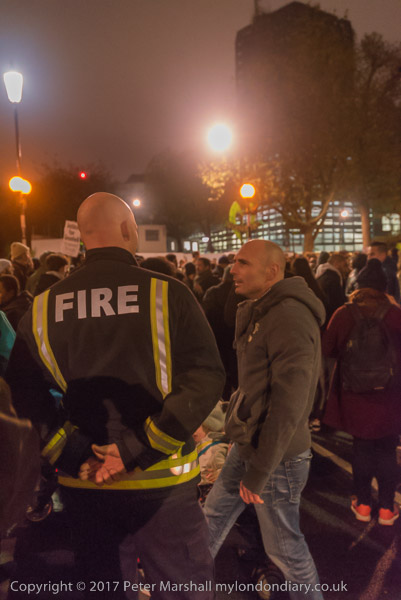 A group of firefighters has come to join the silent march