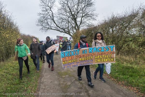 then along the path beside another field. 'Brexit is Racist - Stop
