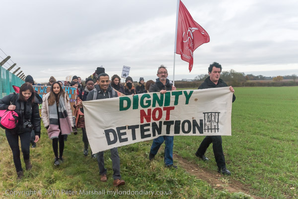The march to Yarls Wood starts along the road