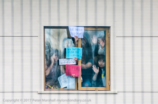 'We Need Freedom', 'We just no visa not criminal', 'Release Us'...