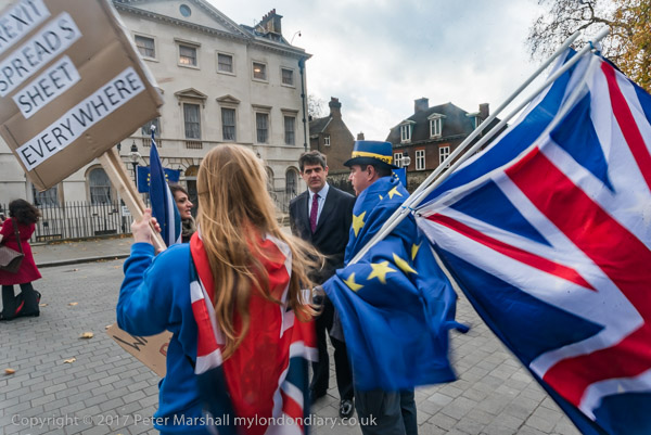 A few people stopped to talk with the Stop Brexit protesters, including