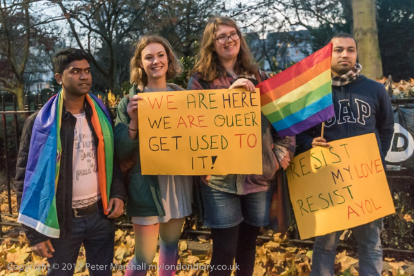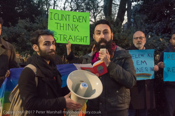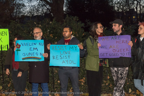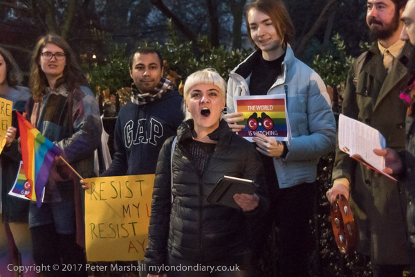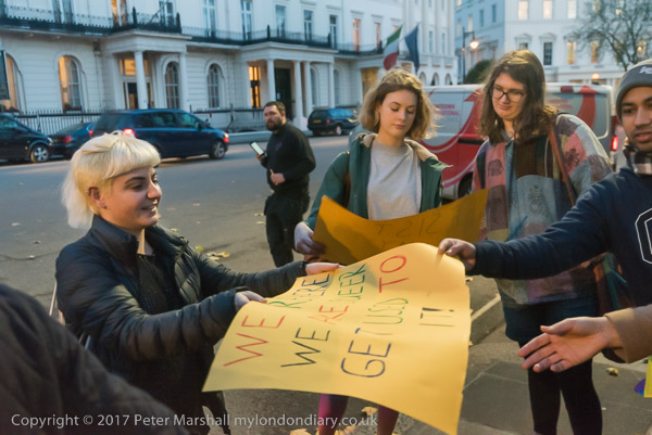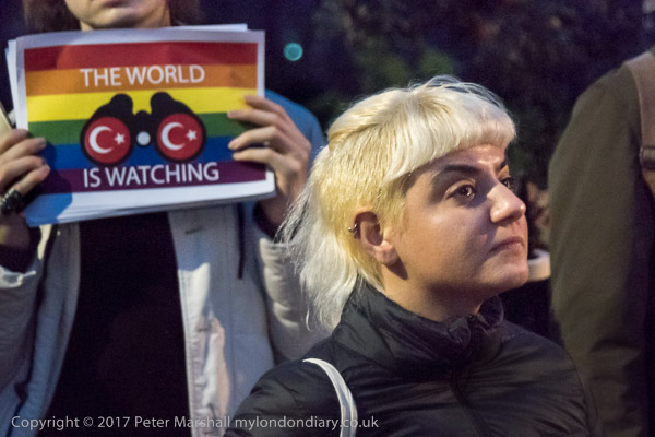 Some had brought posters fro the protest opposite the Turkish Embassy