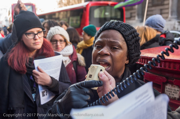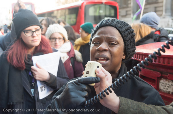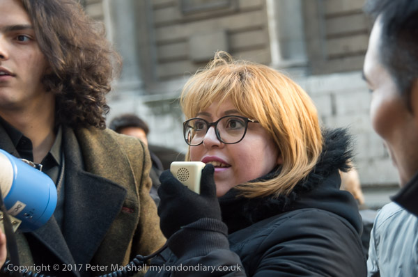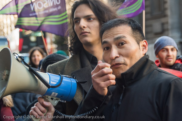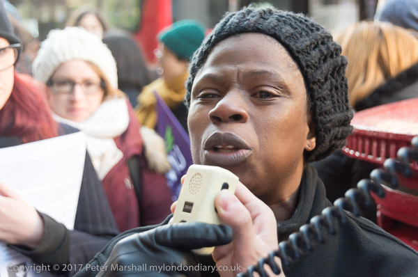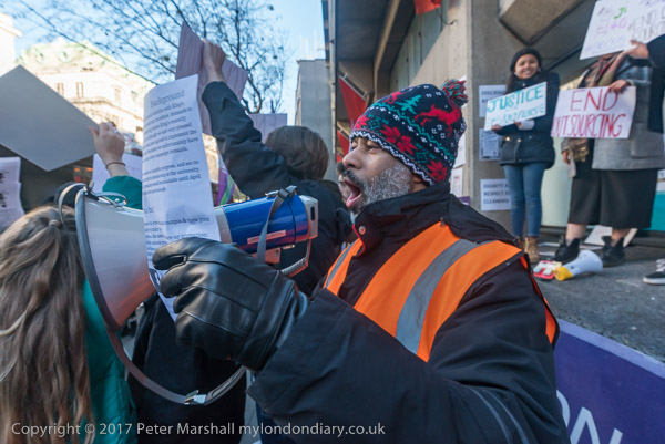 Many of the cleaners spoke at the protest