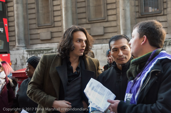 A large crowd was almost blocking the pavement outside King's Colleg