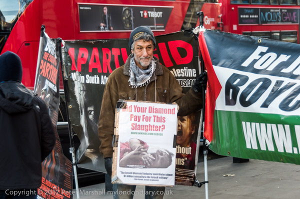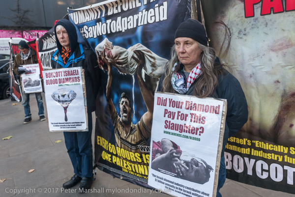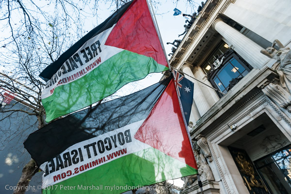One with the message 'Free Palestine' and the other 'Boycott Israel'