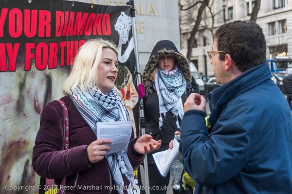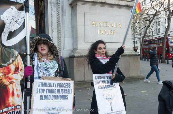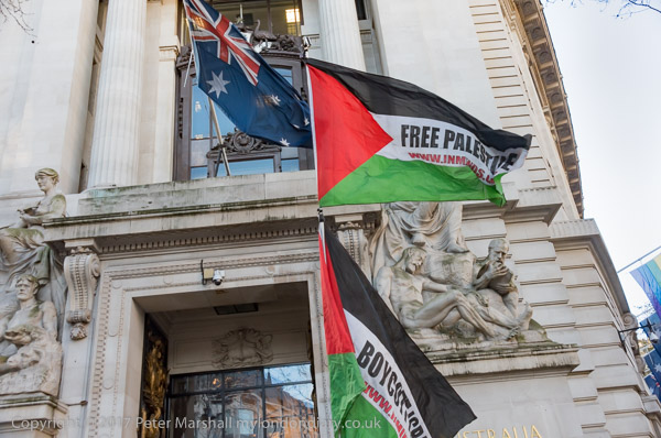The campaigners put up banners in front of Australia House