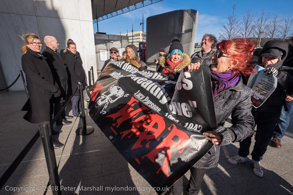The protest came at the end of the first week of the action which began on 21st February and which is demanding the Home Office respect the European Convention of Human Rights, end the separation of families, end indefinite detention, with a 28 day maximum detention period, end charter flights which deport people without notice, and end to re-detention of those released from detention.