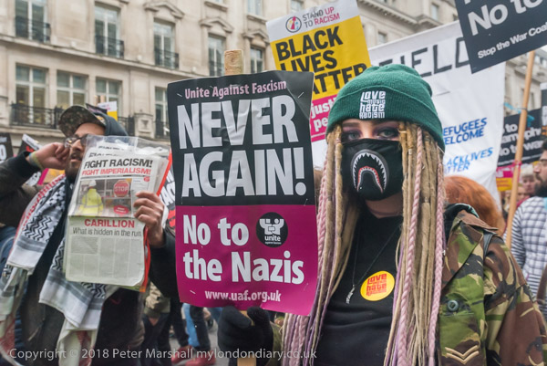 Police made several attempts to stop their march with a small force of officers including two poorly controlled horses who endangered the public on some of the crowded West End streets. They kept trying to stop the march going where it intended and making it go back to Downing St, but there were not enough of them to stop people simply walking around their various cordons.