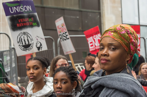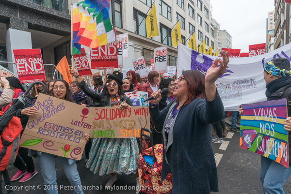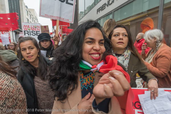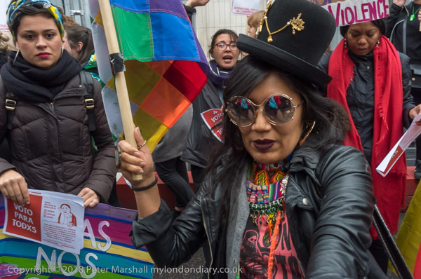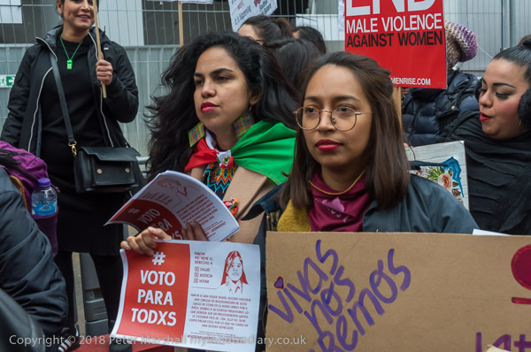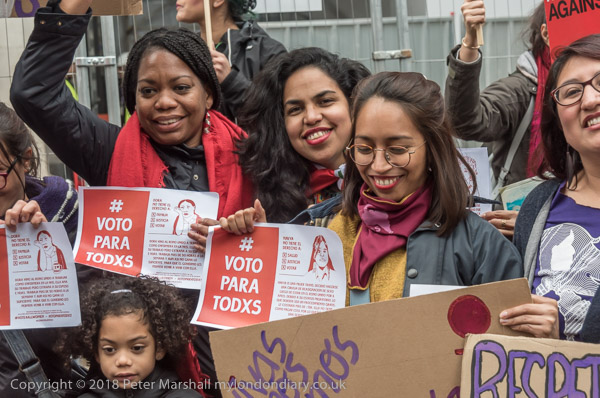 London LatinXs women hold up a flier in Spanish about Votes for all