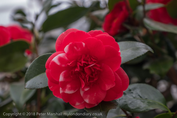 The camellias fill the length of the conservatory, with some bushes