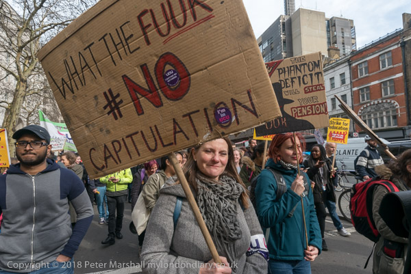 The marchers were going to a rally in Methodist Central Hall, but I decided