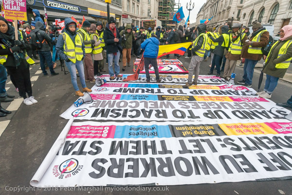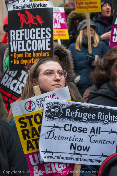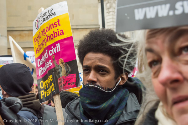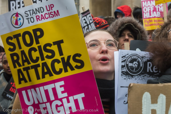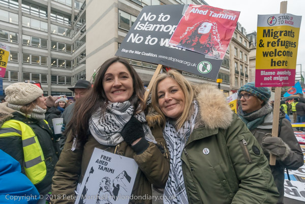 'No To Islamophobia' and 'Free Ahd Tamini', the Palestinian teenager