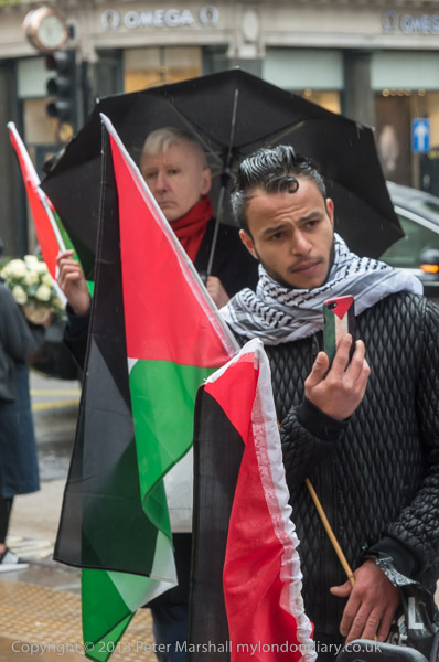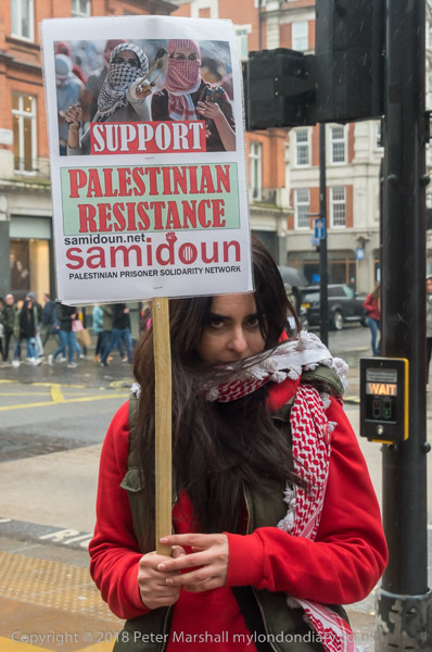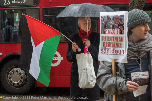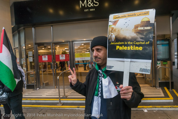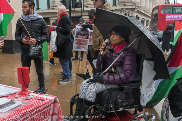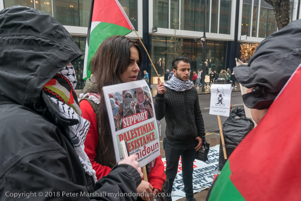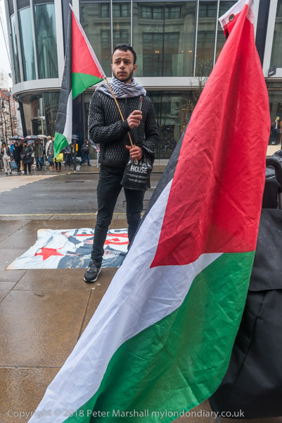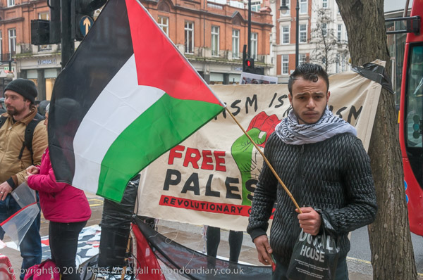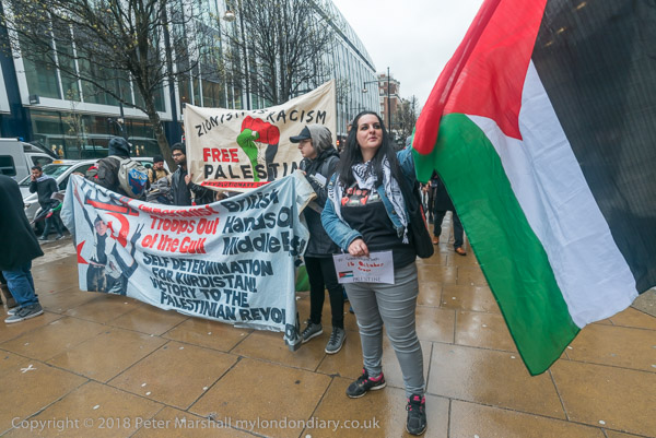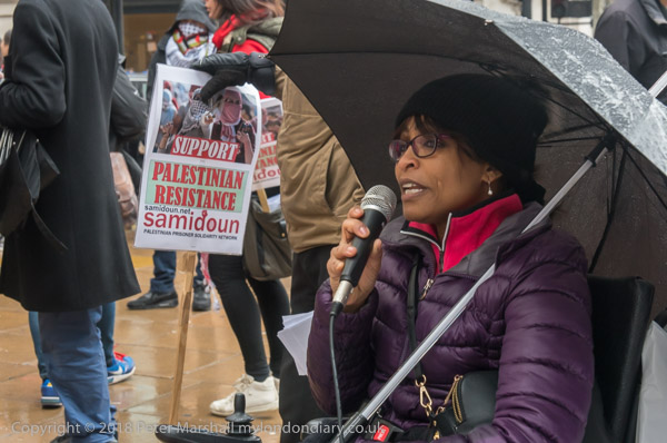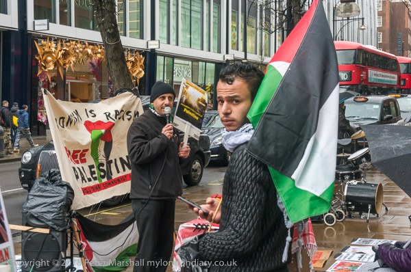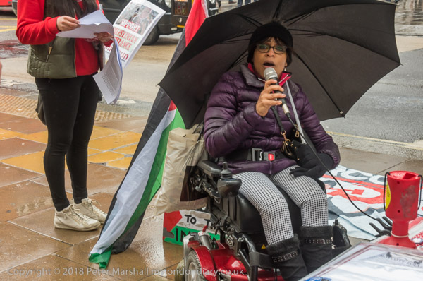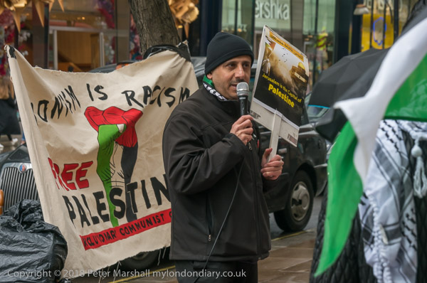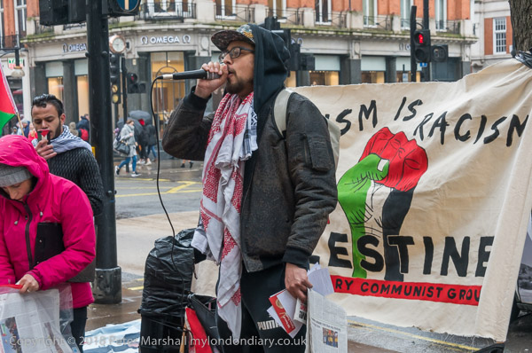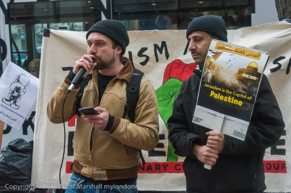 A campaigner speaks about Palestine in front of the banner 'Zionism