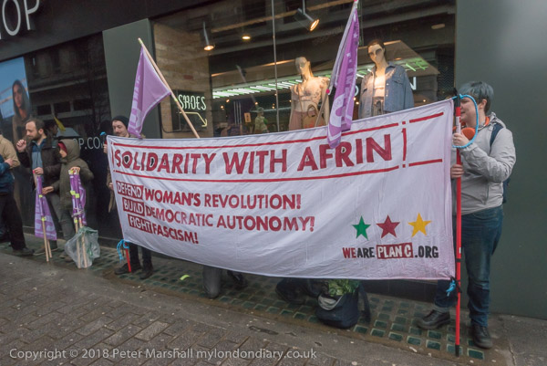 Plan C's banner 'Solidarity with Afrin - Defend Woman's Revolution!,
