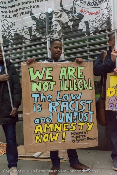 'We are not illegal - the Law is Racist and Unjust - Amnesty Now!'