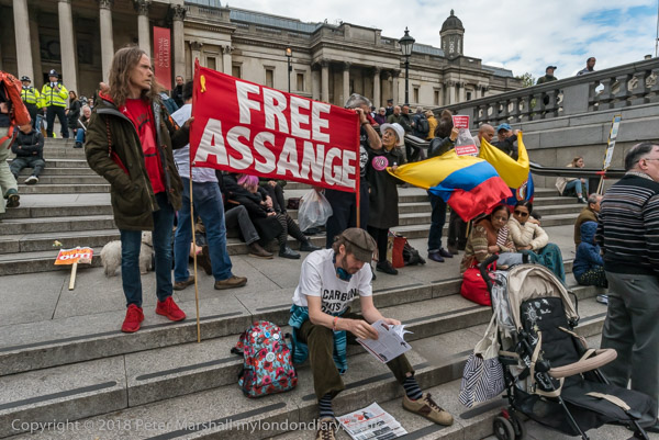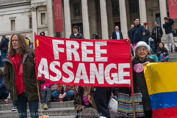 some of the Assange supporters held Columbian flags