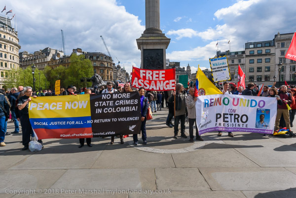 Columbians pose in Trafalgar Square as the rally ends