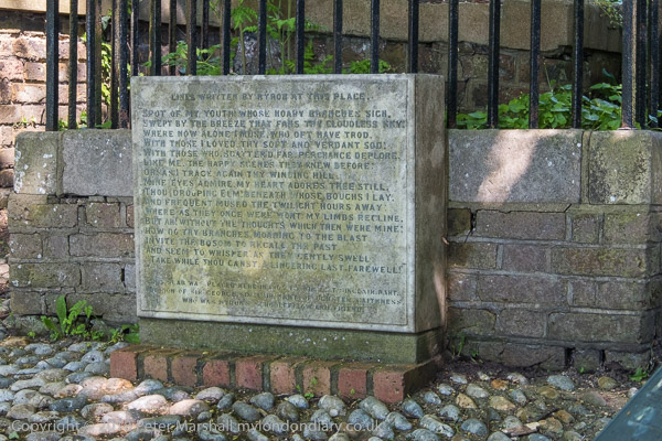 placed here by the son of a friend and fellow Harrow pupil of Byron