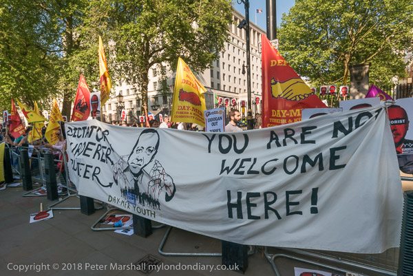 views clear. 'Dictator Murderer Torturer You and Not Welcome Here!'