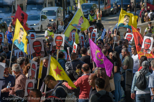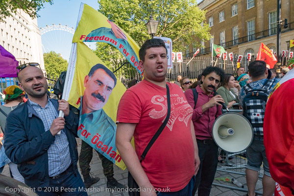 THe Kurdistan Solidarity Campaign placard shows him in bright red