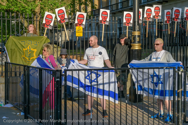 Six Zionists had come to defend the shootings by Israel. Three hold