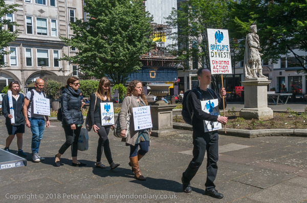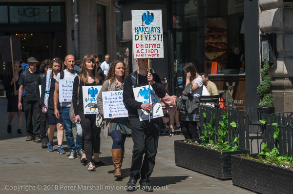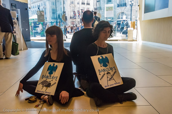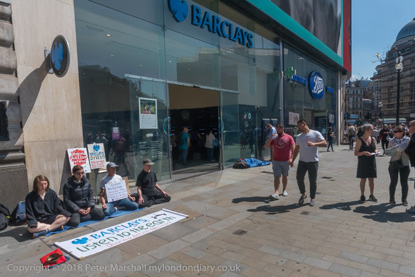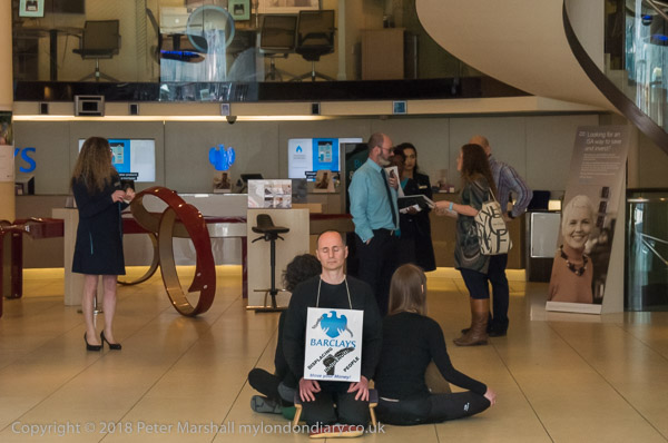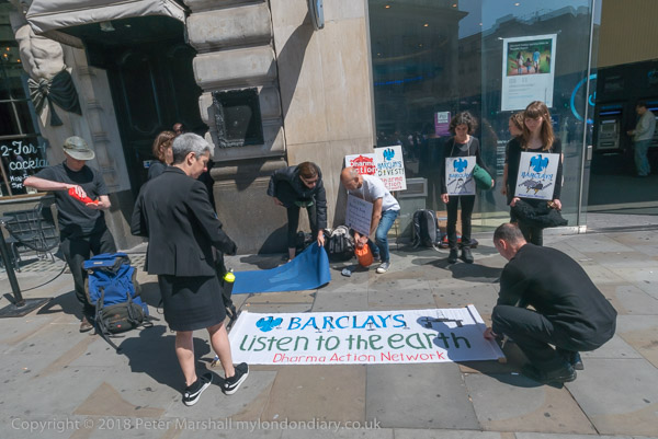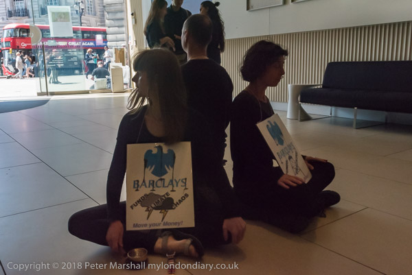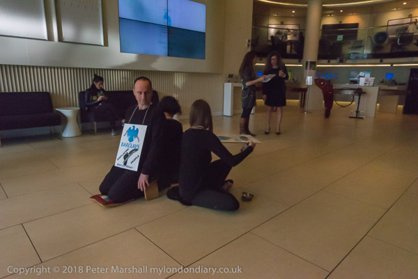 When they arrived they spread out a banner in front of the Barclays