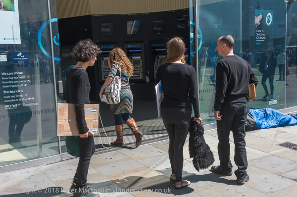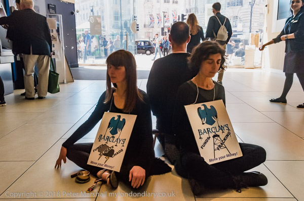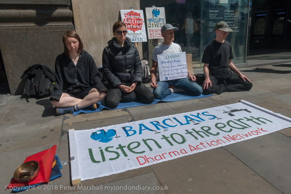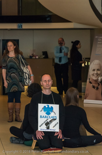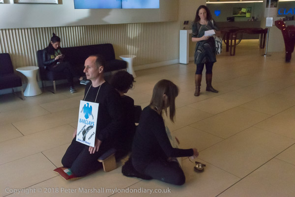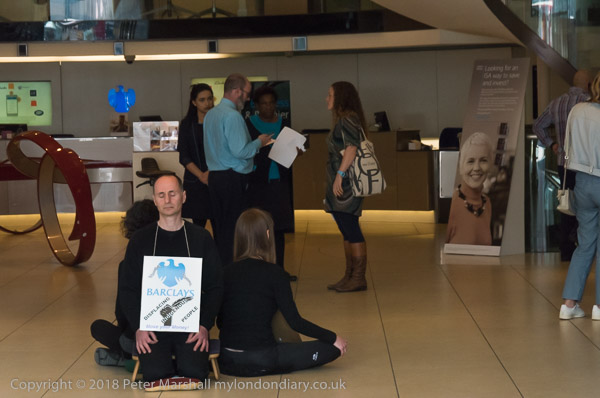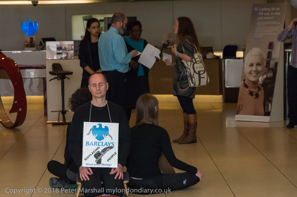 Inside a member of the bank staff was making a phone call as the meditation