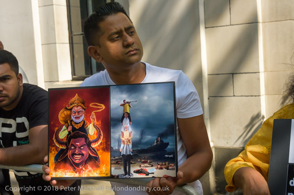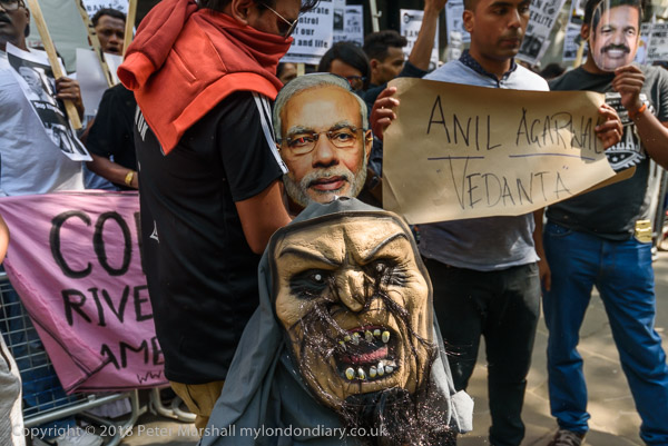 Indian Prime Minister Modi's mask is above a grotesque parody of Vendanta