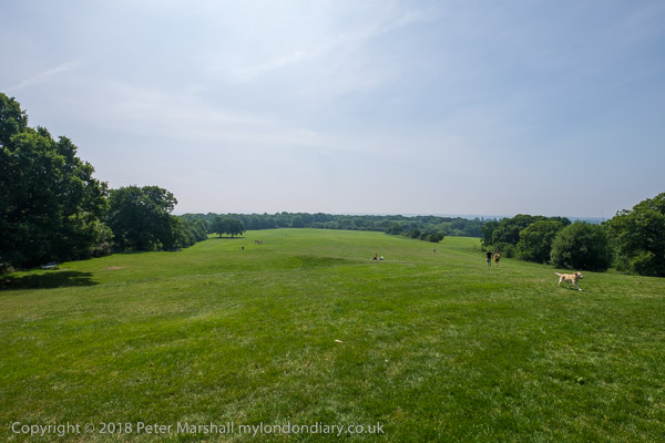 Oxleas Meadow. There would be a wide view here if the air was clear