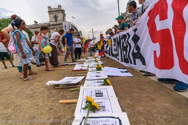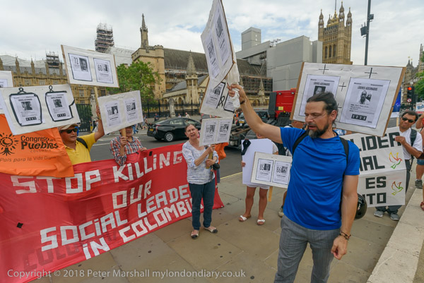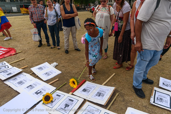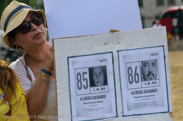 Protesters held pictures showing the assassinated community leaders