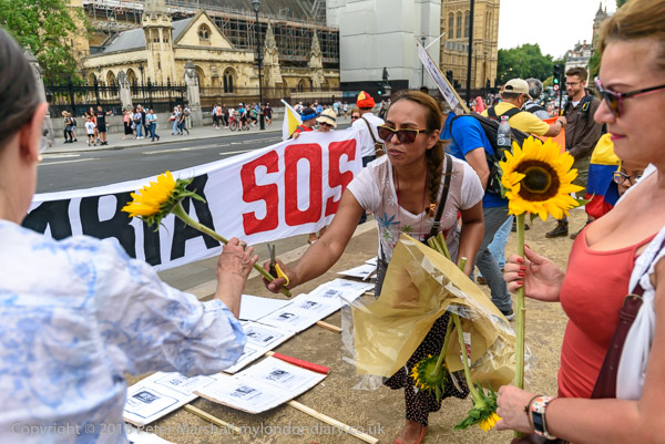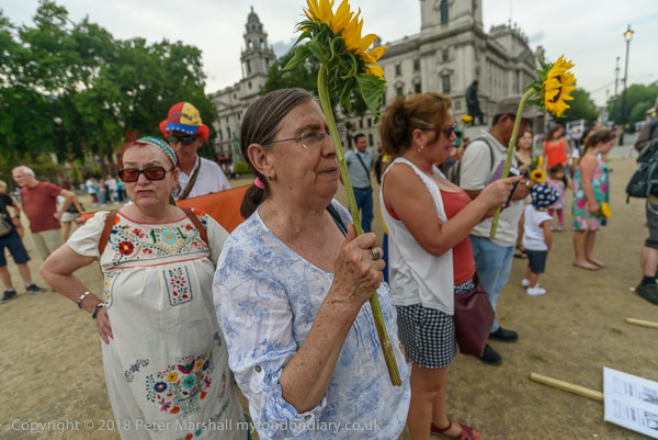Some had brought sunflowers to the protest