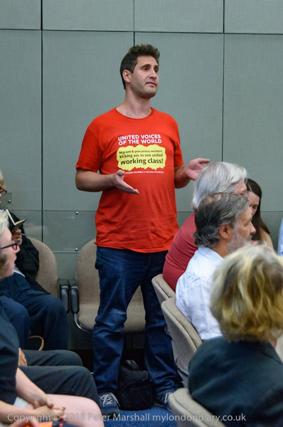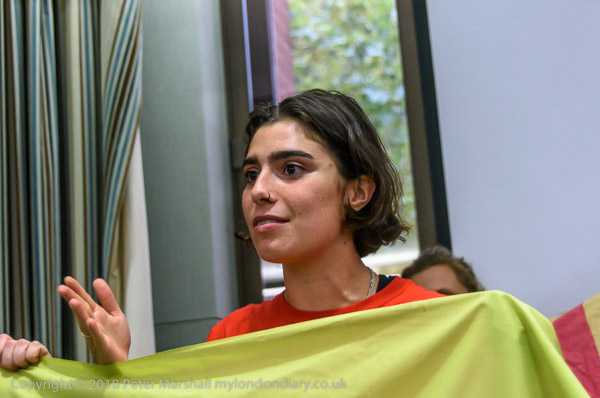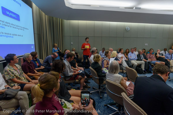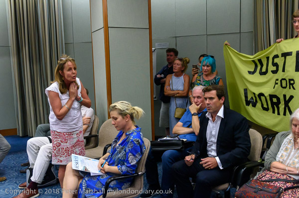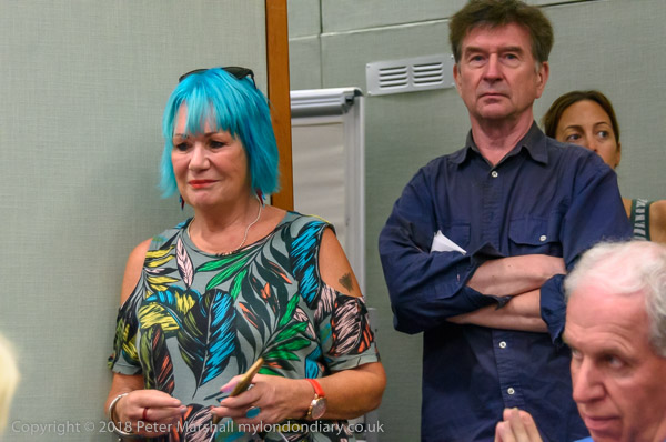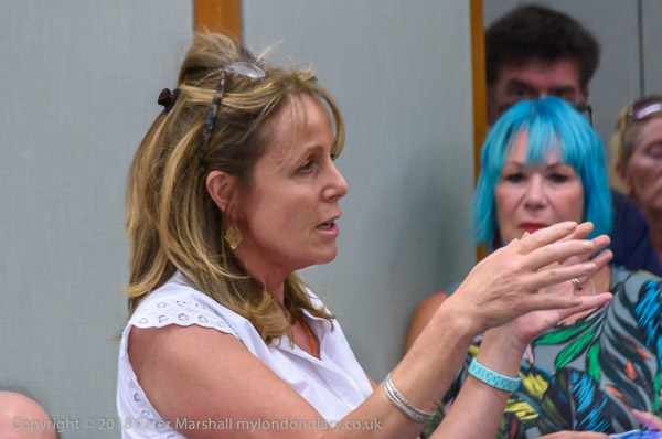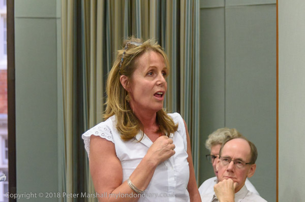 A woman gets up and identifies herself as Councillor Catherine Faulks