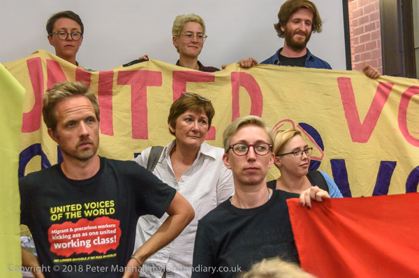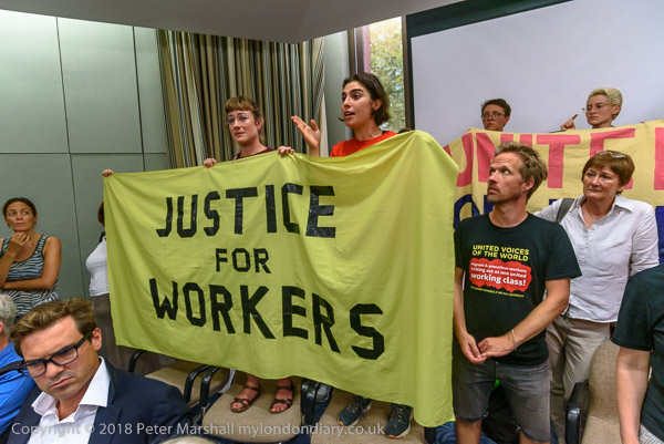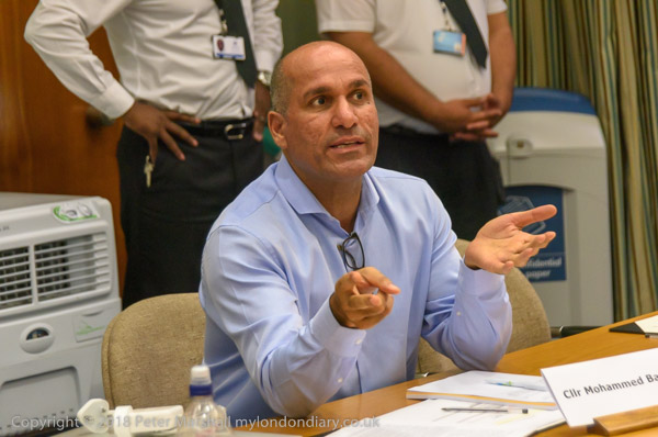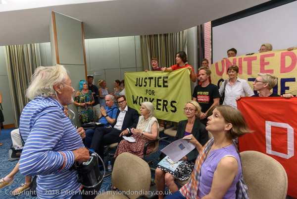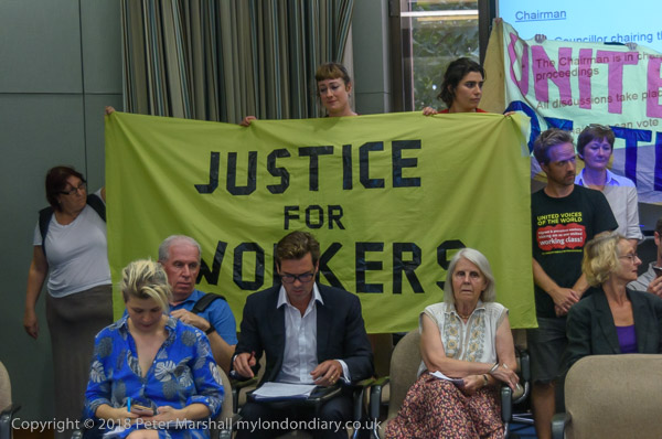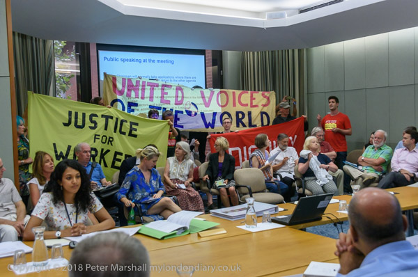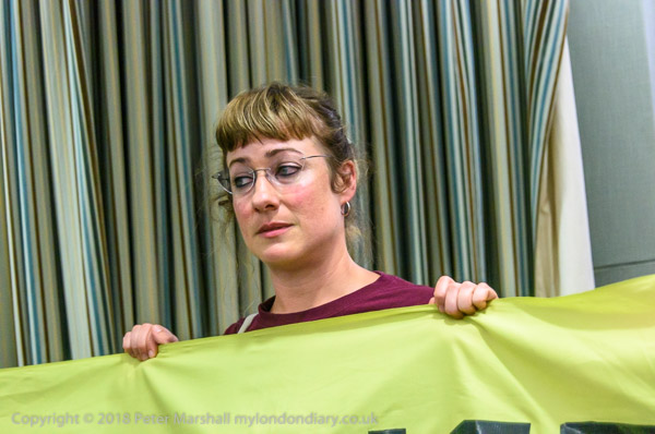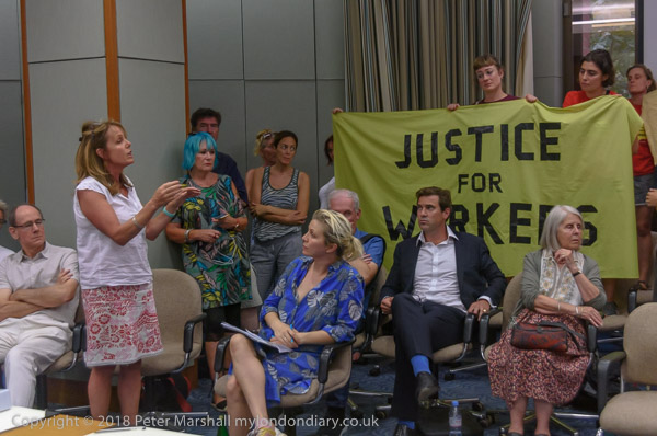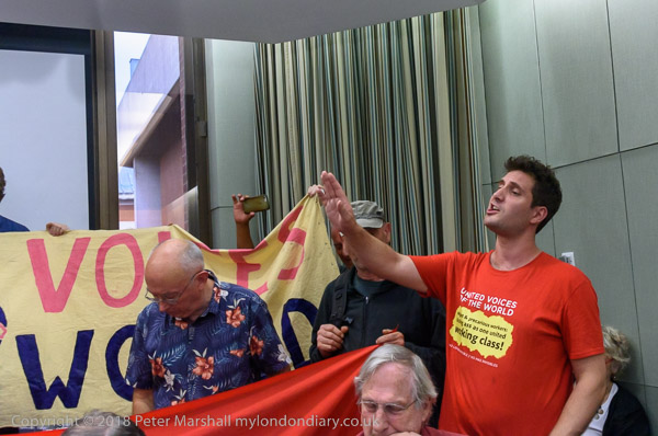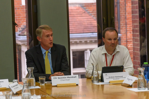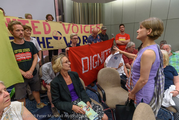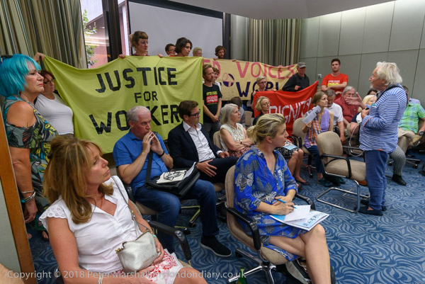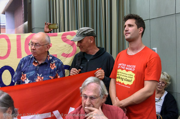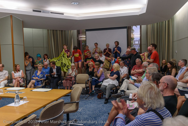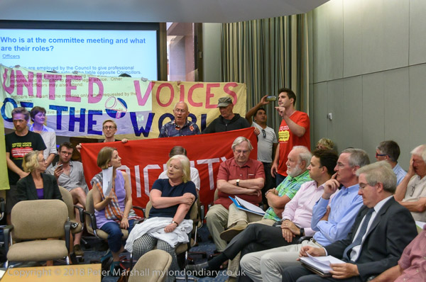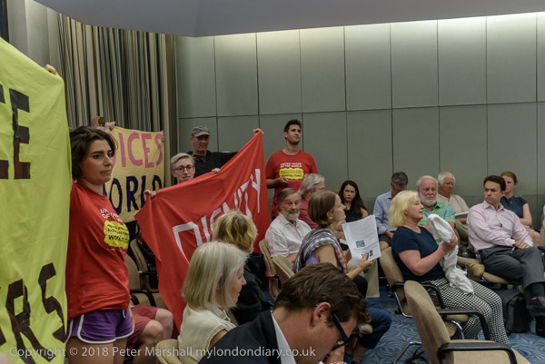 Cllr Quentin Marshall who is chairing the meeting asks the protesters