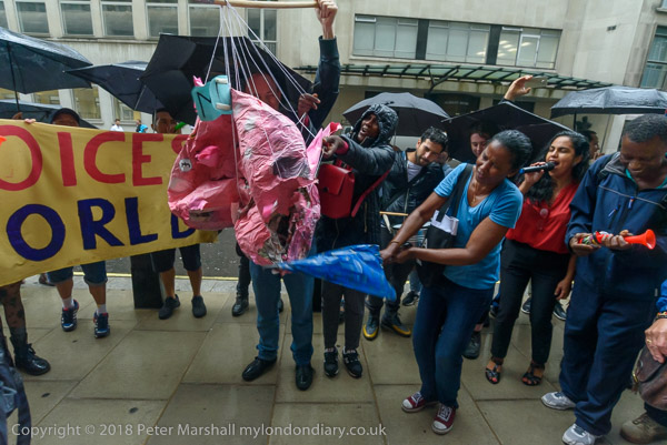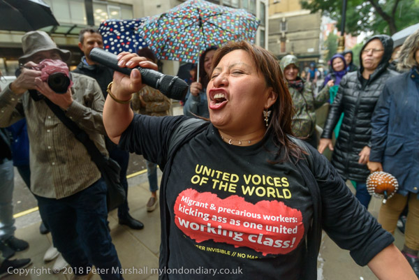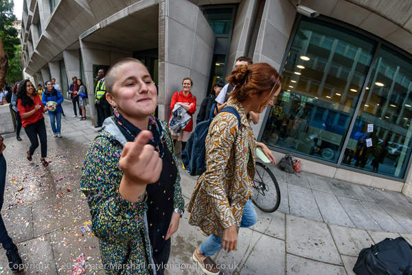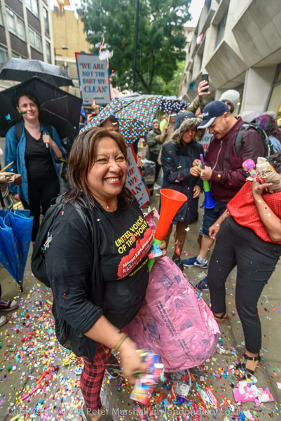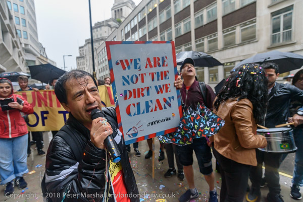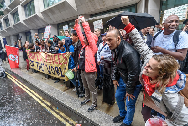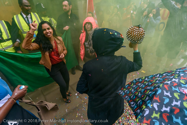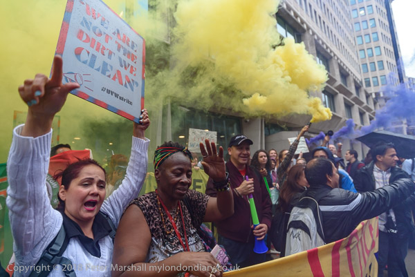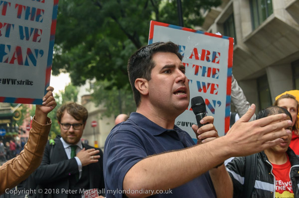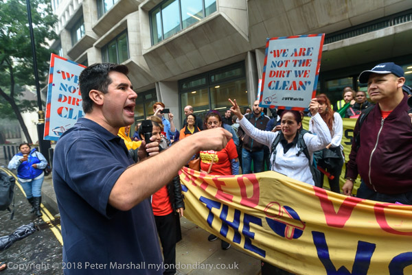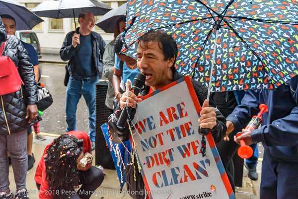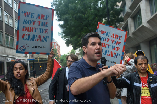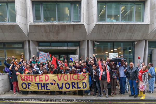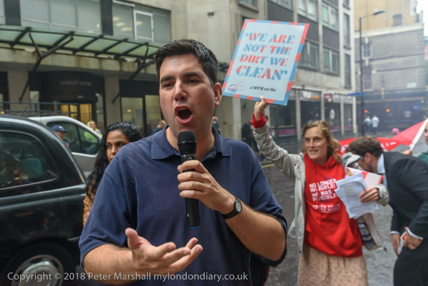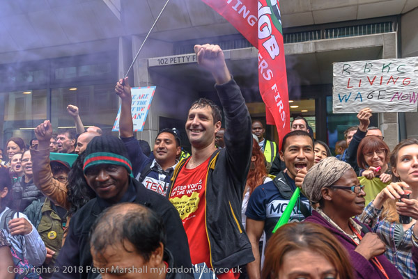 Richard Burgon raises a fist with the UVW cleaners