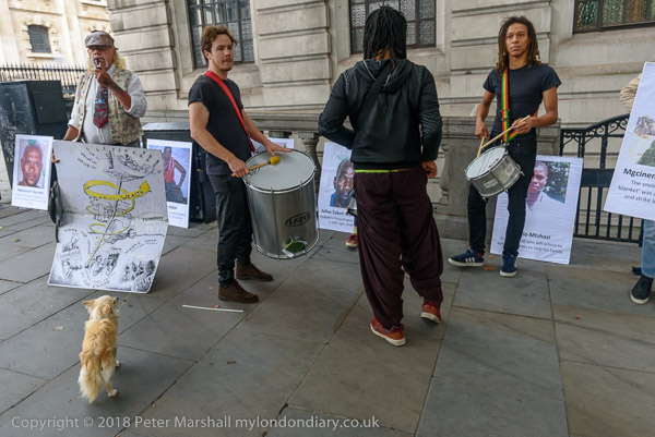 The protest starts with some drumming and people holding posters of