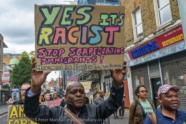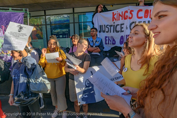 The walk took place because of the continuing struggle with Lewisham Council over their plans to build on the 20-year old community run Old Tidemill Garden, the adjoining council flats, Reginald House, and Tidemill Primary School, which closed in 2012. Local residents, including those whose homes in Reginald House are threatened with demolition have opposed the plans, and at the end of August a group of them occupied the Old Tidemill Garden.