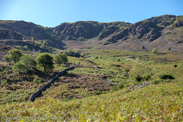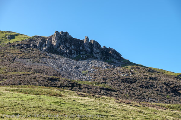 Some rocky bits on the hillside behind looking up towards Crag Fell