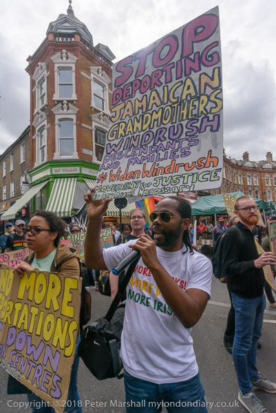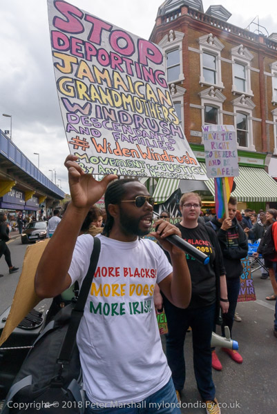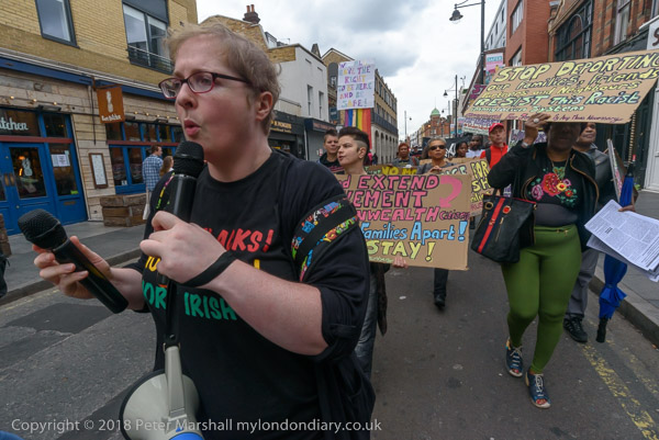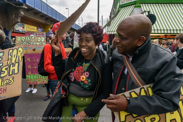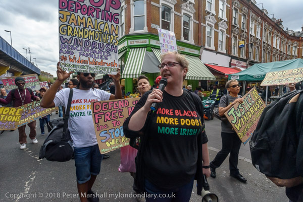 Karen Doyle leads some chanting at Brixton Market