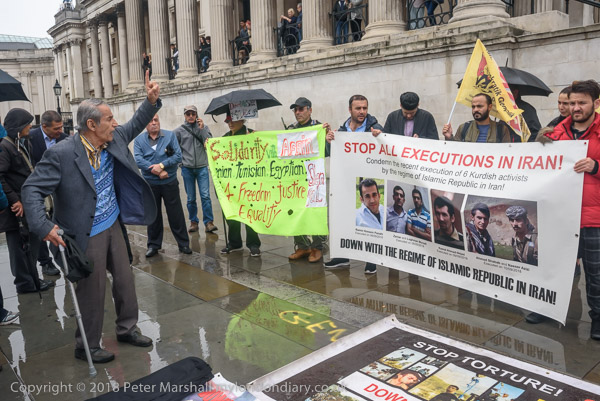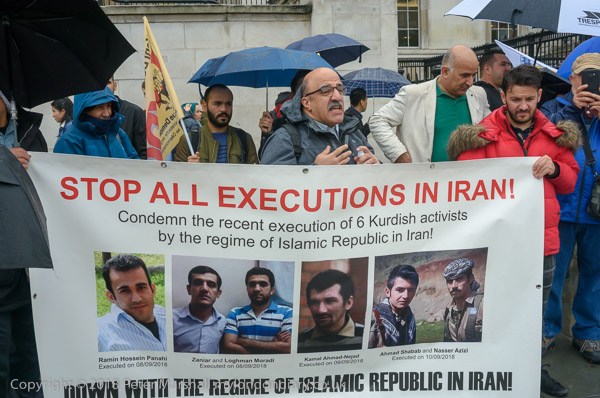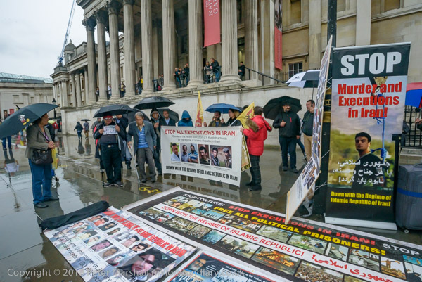 Protesters against the Islamic Republic of Iran, which imprisons and