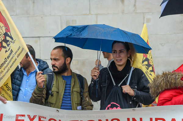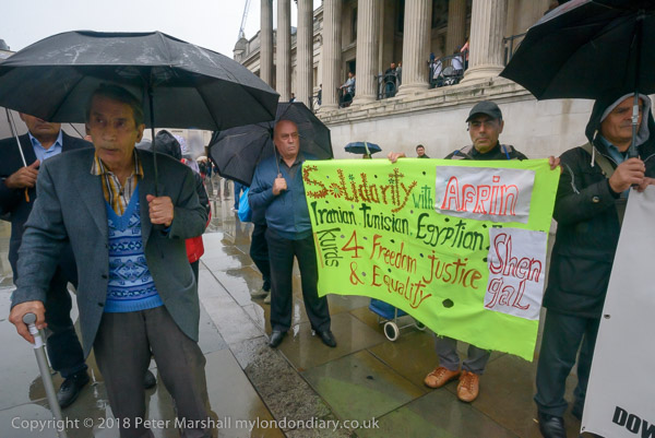 A banner calls for solidarity with the Syrian Kurdish area of Afrin,