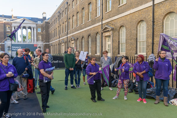 People carriy in the SOAS Unison banner to join the cleaners inside King's.